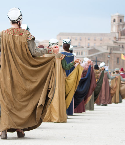 Il primo giorno del Palio, 12 agosto, viene messa in scena la benedizione dei Cavalieri e dei Quartieri, oltre la suggestiva Consegna delle armi in Piazza Teatro (Dalla terrazza del nostro Rooms & Breakfast è possibile seguire la manifestazione).